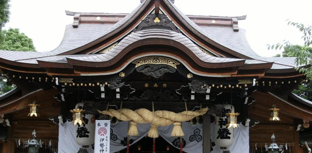 櫛田神社修復工事 千鳥破風飾り金箔押し仕上げ